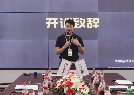 给新人培训开场致辞的是公司的董事长助理刘善杰,刘总以自己在公司的成长经历,给新员工带来了真诚的经验分享,希望大家首先能有一颗感恩的心,感恩公司给予的平台和发展机遇,其次要有归零的心态,并且善于学习,乐于助人。心存敬畏,方能笃定。
