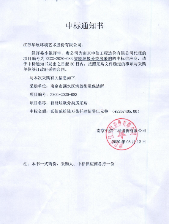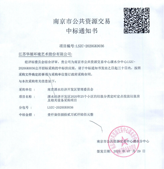 项目名称:溧水经济开发区2020年25个小区的中标中标垃圾分类定时定点投放垃圾房及相关设备采购项目