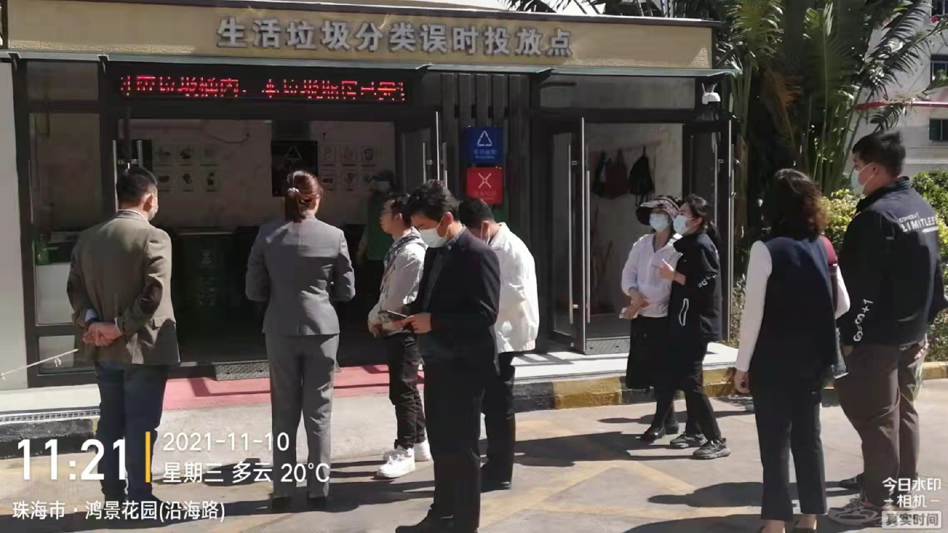 2021年11月10日,参观处理珠海联港城市运营服务有限公司一行参观新家园、园湾园垃湾仔鸿景花园垃圾分类定时定点模式和垃圾分类处理中心。仔鸿中心