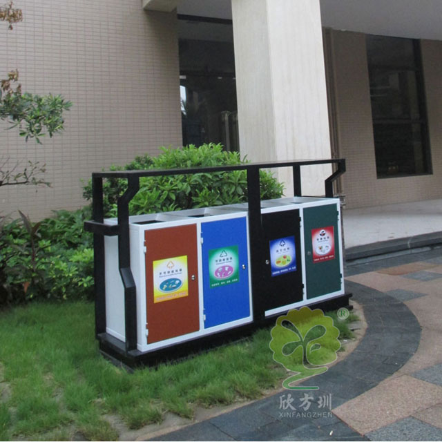 为区别于传统两分类垃圾桶形式,看超我们设置了四分类标准,分类更加便于我们的垃圾亮登投放。