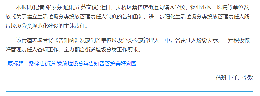 - 招投标信息2021年5月16日,安徽、浙江、江苏招标项目信息,全国中标项目信息均暂无更新。01POLICY行业政策·济南市桑梓店街道发放垃圾分类告知函02更多垃圾分类信息,关注公众号)INFORMAT