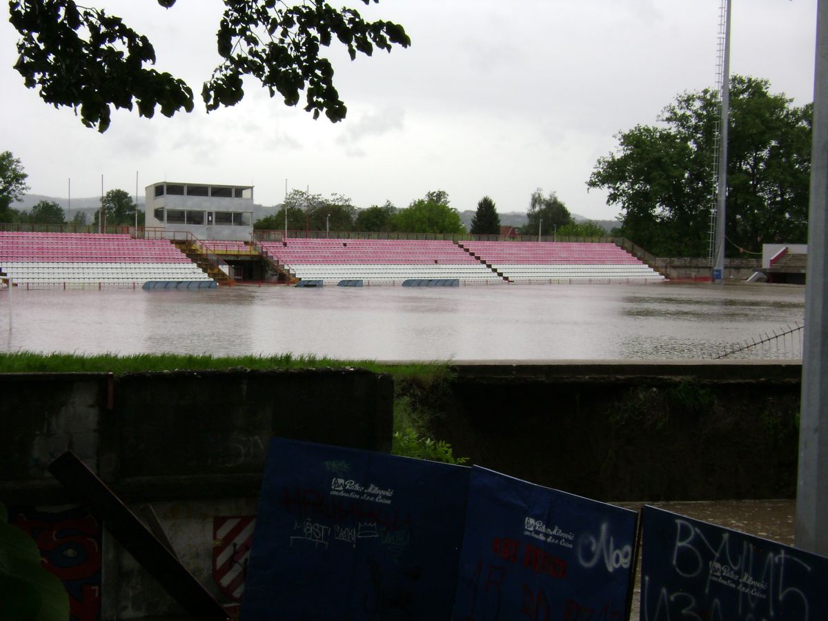 Izlivanje Zapadne Morave je prouzrokovalo i pravu poplavu na stadionu kraj Morave. Fudbalsko zdanje je odolevalo do prepodnevnih časova, kada je voda koja je opkolila stadion sa svih strana prodrla na glavni teren. S'obzirom da nadležni organi najavljuju porast nivoa vode, veliko je pitanje kakve će posledice na našem stadionu ostaviti današnja poplava.